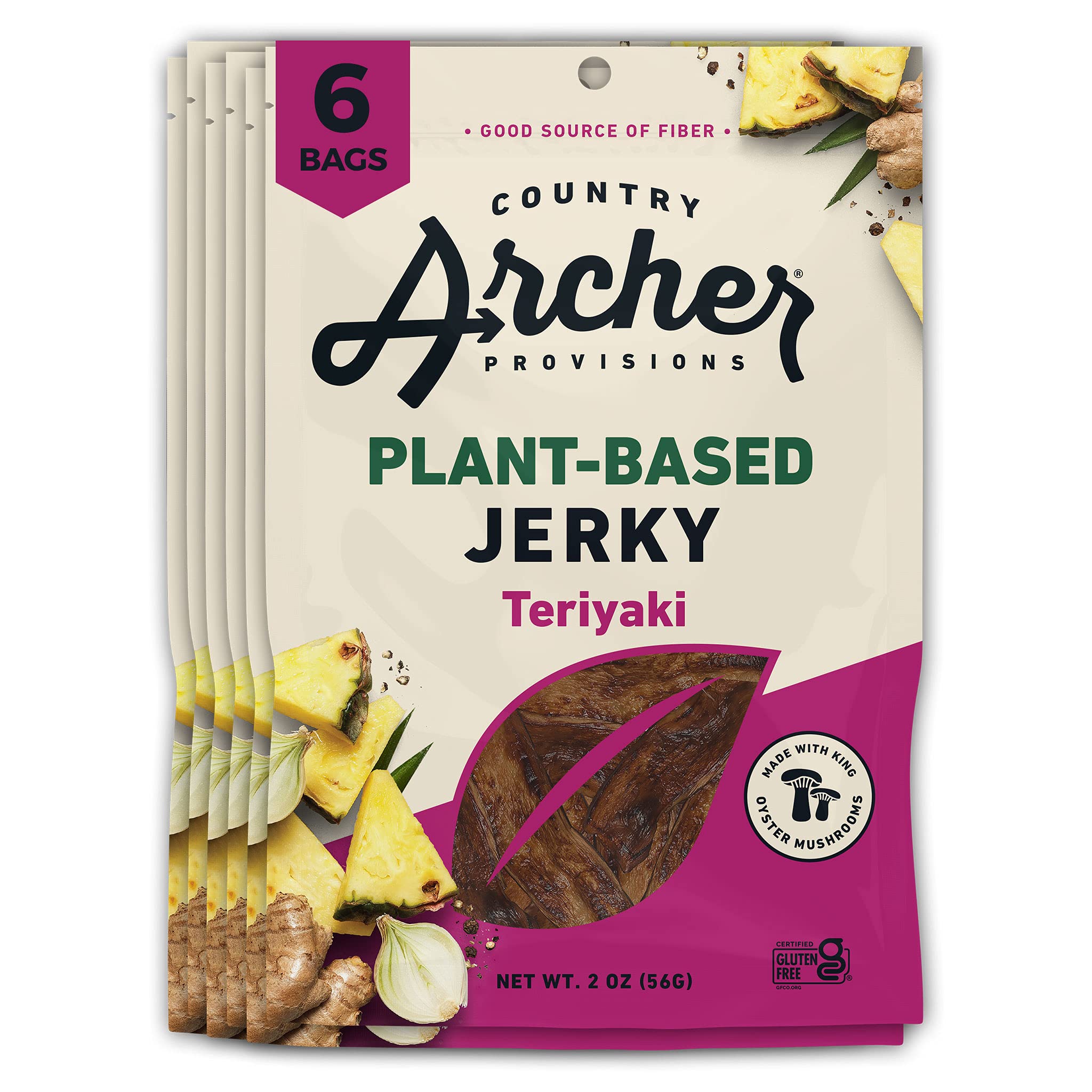 Amazon Com Teriyaki Mushroom Jerky By Country Archer Plant Based Vegan Jerky Gluten Free Kitchen Made Not Lab Grown 2 Ounce 6 Pack Grocery Gourmet Food